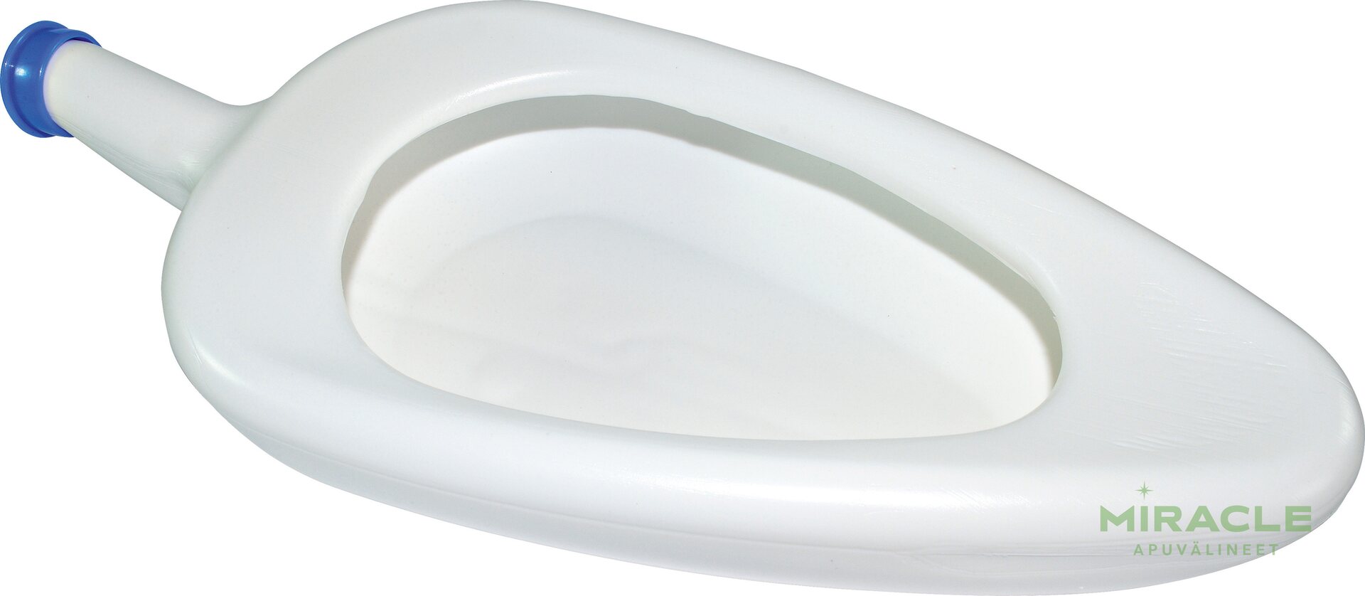 Alusastian kapea ja matala muoto liukuu vaivatta käyttäjän alle. Tämä on suuri helpotus sekä käyttäjälle että hoitajalle, sillä se vähentää lanteeseen kohdistuvaa nostotarvetta ja tekee asennon löytämisestä helpompaa. Tuote tuntuu käytössä vakaalta, ja sen muotoilu on optimoitu ehkäisemään ohivuotoja paremmin kuin perinteiset virtsapullot.