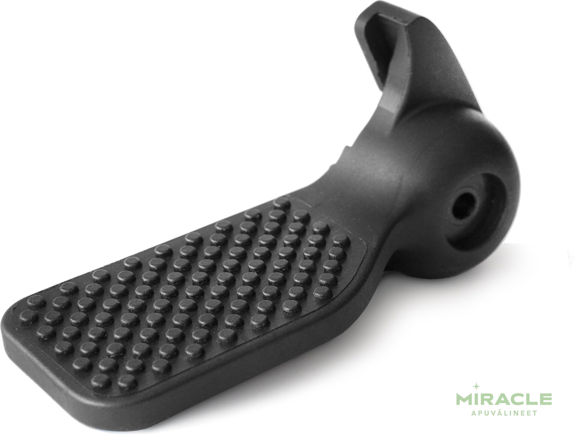 Trust Care -rollaattorin nostoavustin auttaa nostamaan rollaattorin etuosaa, jotta voit helposti ylittää kadun reunakivetyksen ja muita esteitä. Nostoavustin kiinnitetään rollaattorin vasemmalle puolelle takarenkaan viereen.