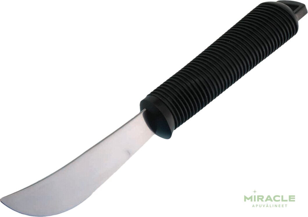 Ruokaveitsi, jossa on paksu kahva, tarjoaa erinomaisen otteen ja vakauden ruokailuun. Liukumattoman ja uritetun umpikumikahvan ansiosta veitsi on miellyttävä ja turvallinen käyttää. Valmistettu kestävistä materiaaleista, kuten ABS, TPR muovista ja ruostumattomasta teräksestä. Kädensijan pituus on 11 cm, kokonaispituus 218 mm ja paino 82 g.
