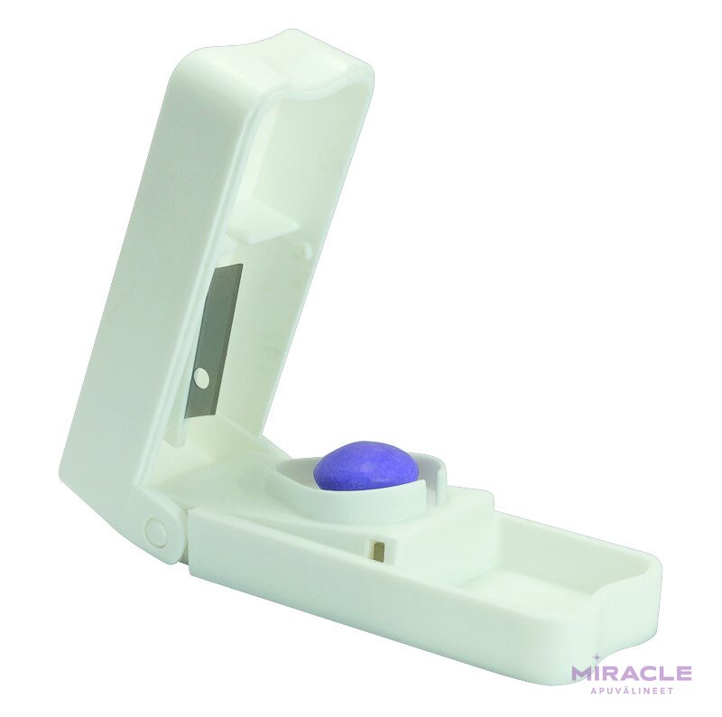 Tabletinpuolittaja on turvallinen ja kätevä apuväline lääkkeiden annosteluun. Valmistettu kestävästä muovista ja ruostumattomasta teräksestä. Siinä on myös kätevä säilytyslokero, jossa voit säilyttää puolitetut tabletit. Mitat ovat 7×3×1,5 cm, mikä tekee tästä tabletinpuolittajasta kätevän kuljettaa vaikka mukana matkoilla.