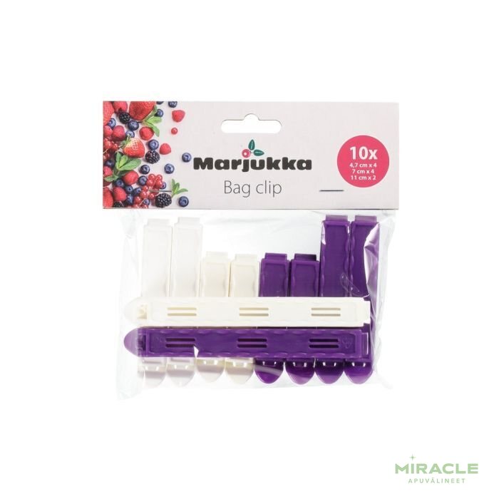 Pussinsulkija on kätevä apuväline säilytyspussien sulkemiseen tiiviisti esimerkiksi pakastaessa. Pakkauksessa on 10 kappaletta pussinsulkijoita, joita on kolmea eri kokoa: pieni, keskikokoinen ja iso. Pieni on kooltaan 4,7cm/4kpl, keskikokoinen suljin on pituudeltaan 7cm/4kpl, ja iso suljin on 11cm/2kpl. Pussinsulkijat ovat astianpesukoneen kestäviä ja niitä on helppo avata ja sulkea käytön aikana. Nämä käytännölliset pussinsulkijat auttavat pitämään ruoan ja muut tavarat tuoreina ja säilyvät pitkään.