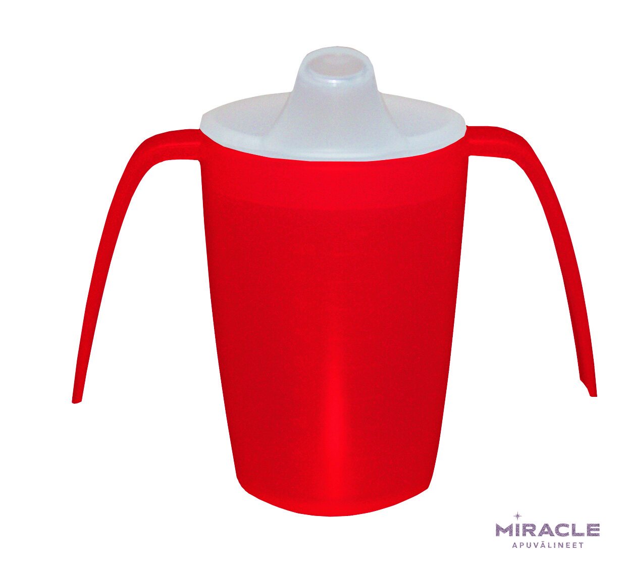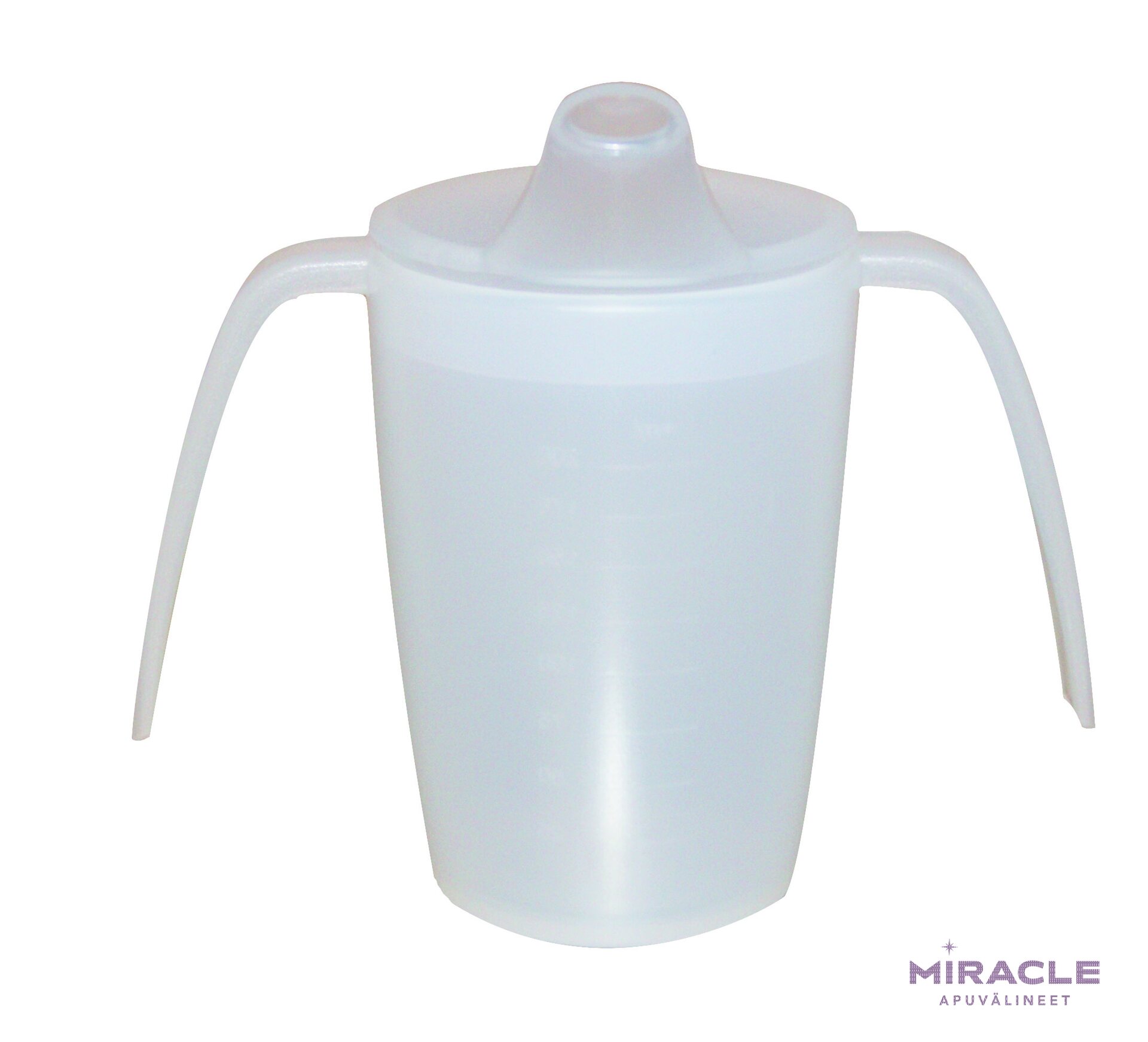 Nokkamuki kahvoilla on vakaa ja turvallinen ja valmistettu kestävästä polypropeenimuovista. Pakkauksessa on kaksi erilaista kantta, toinen vedelle ja mehulle, toinen vellille. Nokkamukissa on kahvat molemmin puolin, joten mukista saa tukevan otteen. Muki on läpinäkyvä ja tilavuudeltaan noin 220 ml, ja siinä on kätevä mitta-asteikko. Nokkamuki on mikroaaltouunin ja astianpesukoneen kestävä.