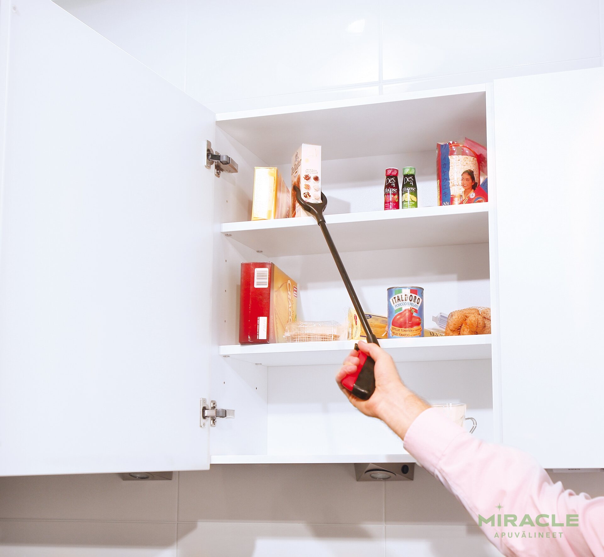 Tartuntapihtien avulla voi nostaa esineitä, jotka sijaitsevat liian korkealla tai matalalla, esim. kaapista tai lattialta, ilman kumartumista tai venymistä. Esineeseen tartutaan puristamalla kevyesti noukkijan kahvaa. Noukkija soveltuu kannattelemaan pieniä ja kevyitä esineitä, kuten kaukosäätimiä tai lehtiä.