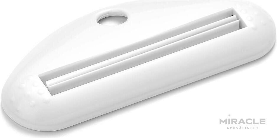 Tuubipuristimen avulla saat esimerkiksi hammastahna- tai voidetuubin viimeisenkin sisällön käytettyä silloinkin, kun sinulla on vähän voimaa käsissä tai sormissa. Helppo ottaa käyttöön vain työntämällä voidetuubi puristimen leukojen läpi.