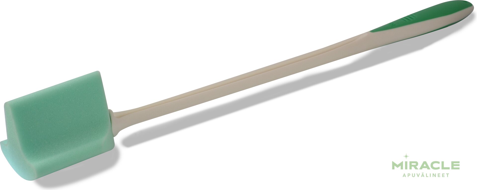 Varvaspesuri on kätevä apuväline jalkojen hoitoon ja varpaiden sekä varpaan välien hellään puhdistukseen. Tässä valkoisessa ja mintunvärisessä muovisessa pesurissa on luistamaton kahva ja pehmeä vaahtomuovisieni, joka hieroo ja puhdistaa varpaat ja varpaiden välit lempeästi. Varsi on taivutettavissa sopivaan kulmaan lämpimällä vedellä tai hiustenkuivaajalla. Varvaspesurin pituus suorana on noin 65 cm. Tämä varvaspesuri auttaa pitämään jalat ja varpaat väleineen puhtaina ja hyvin hoidettuina ilman tarvetta kurottaa varpaisiin.