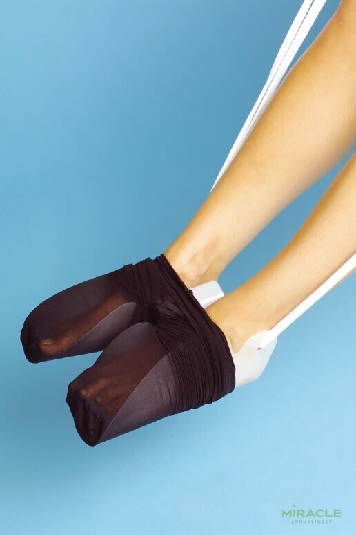 Sukkahousunvetolaite on kätevä apuväline helpottamaan sukkahousujen pukemista. Se on valmistettu joustavasta muovista ja siinä on kaksi vetonyöriä helpottamaan sukkahousujen vetämistä ylös. Tämä käytännöllinen apuväline tekee sukkahousujen pukemisesta vaivatonta ilman tarvetta kurottaa varpaisiin. Vetimen pituus on noin 22 cm ja laitteen kokonaispituus hihnojen kanssa noin 110 cm.