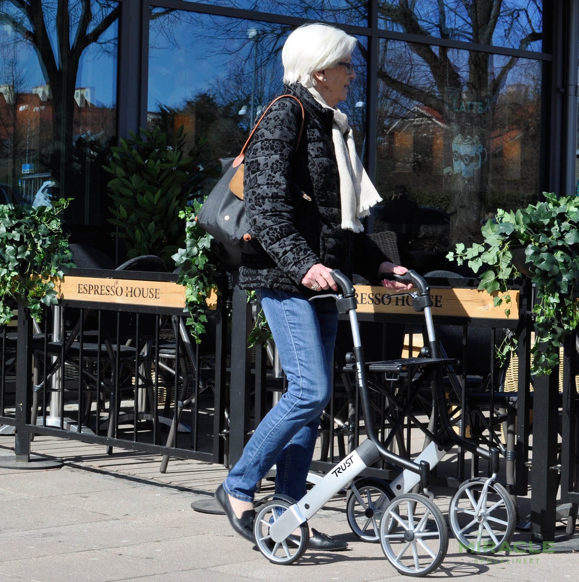 Let's Go Out ulkorollaattori on tyylikäs ja ketterä, mutta silti vakaa. Paino vain 6,2 kg. Helposti taitettava ja mahtuu pieneen tilaan. Iskunvaimennetut takapyörät tarjoavat mukavan matkan kaikille pinnoille. Lisävarusteena saatavilla selkätuki sekä kangaskassi ostoksia varten.