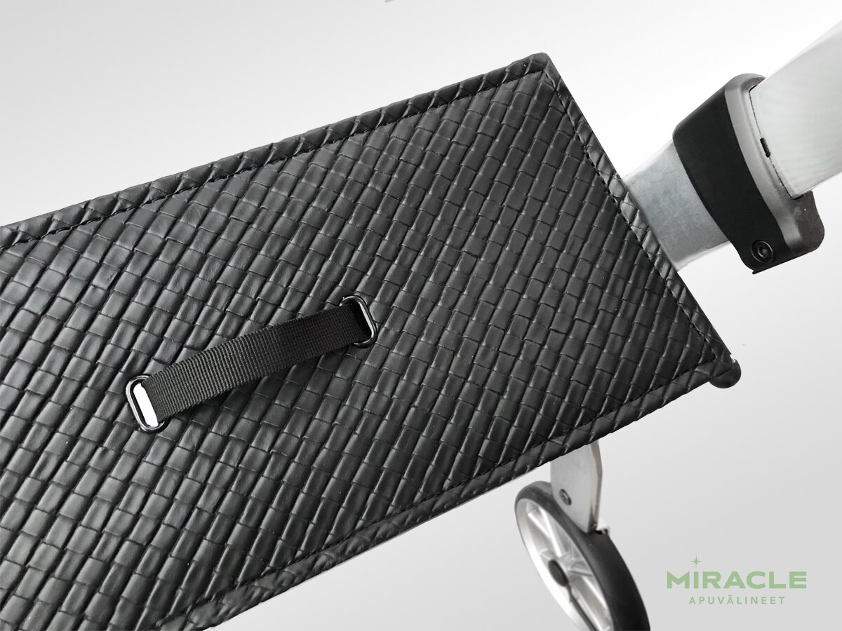 Lisävarusteena saatavilla selkätuki sekä kangaskassi ostoksille. Lisäksi saatavilla tyylikäs kuljetuskassi, jolloin rollaattori on helppo ottaa mukaan matkoille. Kätevä lisävaruste on myös takarenkaaseen asennettava nostoapupainike, joka avustaa kynnyksien ja jalkakäytävän reunojen ylitystä.