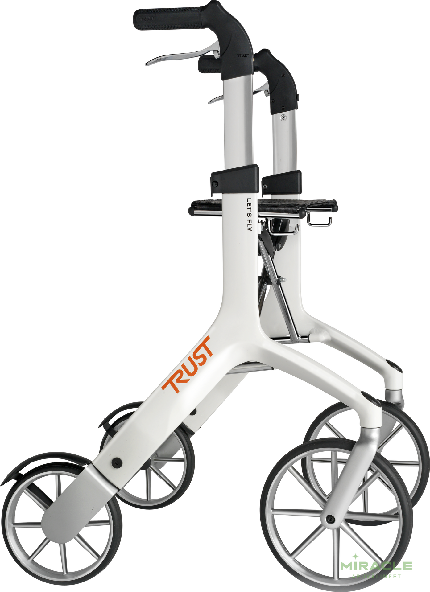 Let's Fly -rollaattorin runko on tehty kokonaan alumiinista. Tyylikäs ja moderni muotoilu kokonaan ilman hitsaussaumoja, antaa sille ainutlaatuisen muodon ja lujuuden. Se on myös kevyt, vain 6,8 kg. Erittäin helppo korkeuden säätö. Tuotteessa on suuret etupyörät, jotka helpottavat mm. jalkakäytävien ylittämistä. Takapyörissä on sisäänrakennettu jousitus, joka antaa pehmeän ja tasaisen kulun. Rollaattorin saa helposti kasattua pienemmäksi kuljetusta varten.