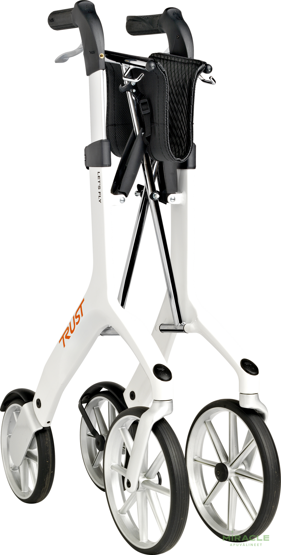Lisävarusteena saatavilla selkätuki sekä kangaskassi ostoksille. Lisäksi saatavilla tyylikäs kuljetuskassi, jolloin rollaattori on helppo ottaa mukaan matkoille. Kätevä lisävaruste on myös takarenkaaseen asennettava nostoapupainike, joka avustaa kynnyksien ja rotvallin reunojen ylitystä.