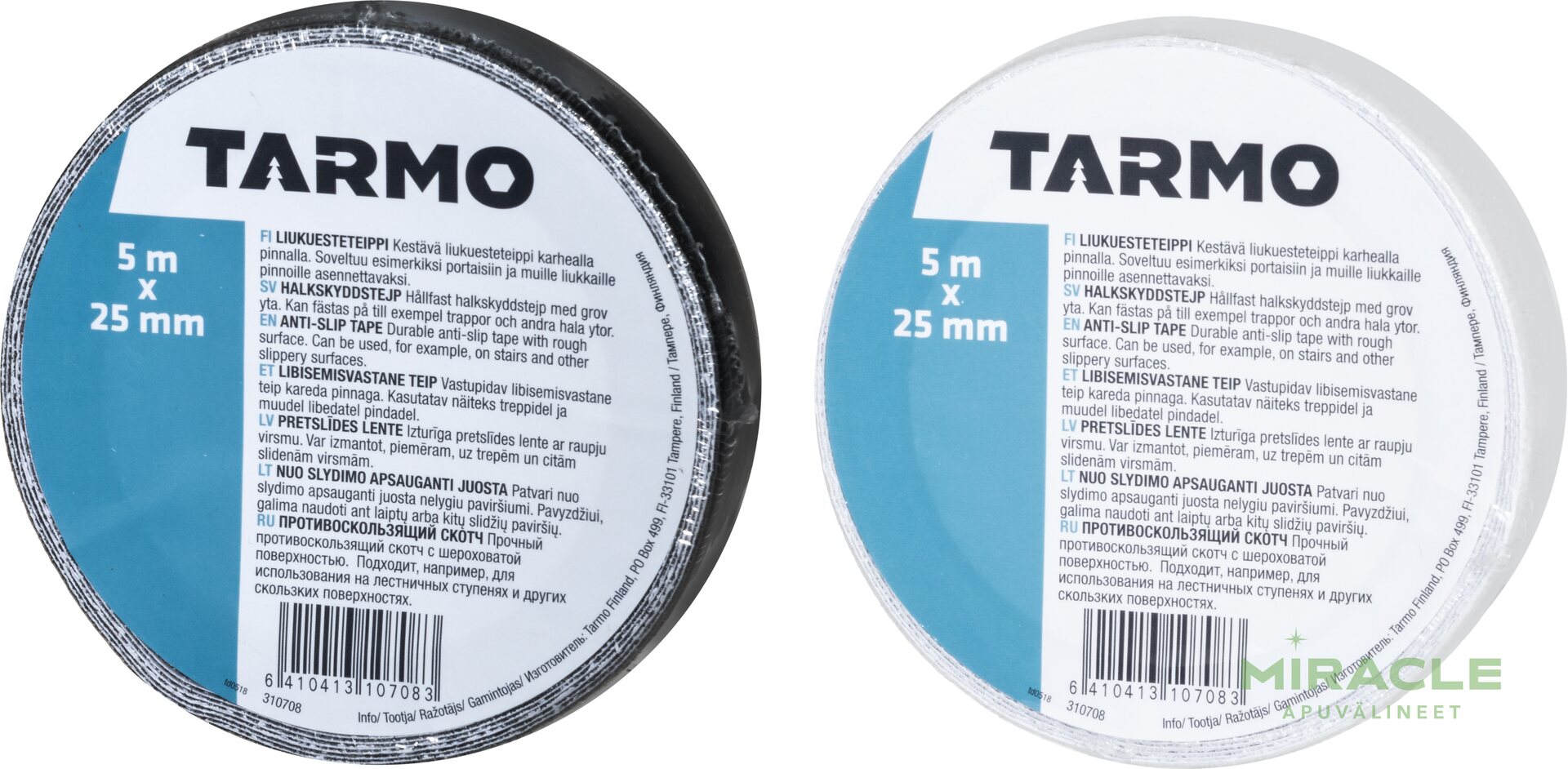 Karkeapintainen liukuesteteippi auttaa estämään liukastumisia. PVC-materiaalista valmistettu teippi sopii portaisiin ja muihin liukkaisiin pintoihin. Helppo leikata sopivan mittaisiksi paloiksi.