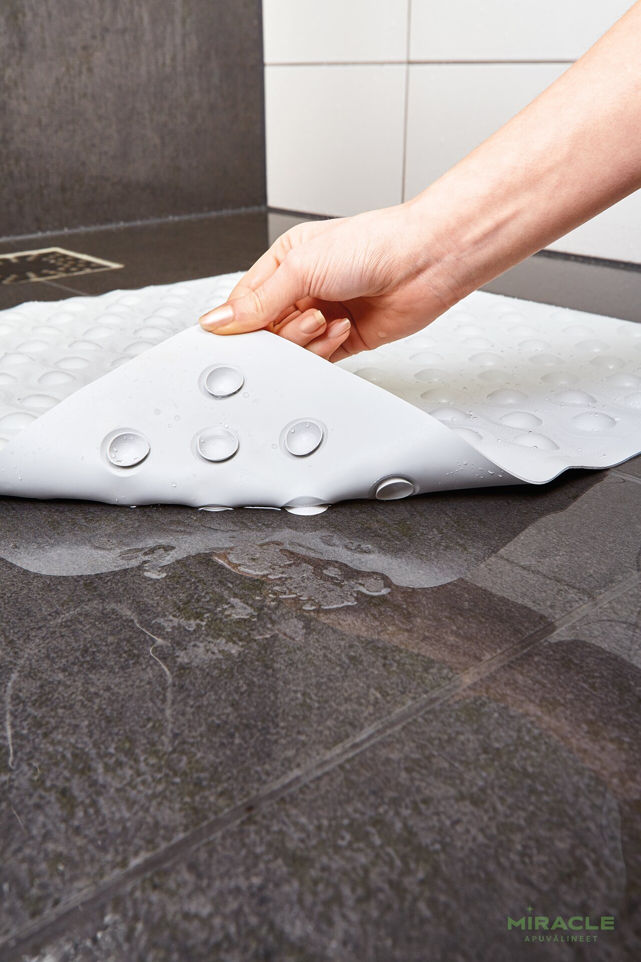 Vitility suihkumatto on arjen apuväline, joka lisää turvallisuutta kylpyhuoneessa mm. lapsiperheillä, ikäihmisillä sekä kaikilla, jotka haluavat lisätä turvallisuutta liukkaalla lattialla. Materiaali PVC ja väri valkoinen.