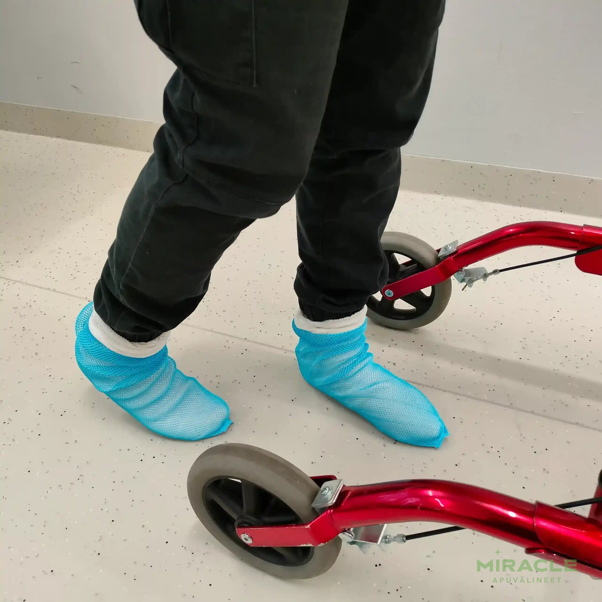 Pitosukka lisää käyttäjän turvallisuutta liukastumista vastaan. Pitosukka estää liukastumista kuivilla ja kosteilla pinnoilla sekä helpottaa asennon vaihtoa vuoteessa. Tämä verkkomainen jarrusukka lisää kitkaa jalan ja alustan välillä, helpottaen omatoimista liikkumista ja asentojen korjailuja vuoteessa. Kun liikkuminen helpottuu, käyttäjän omatoimisuus paranee. Pitosukka on helppokäyttöinen, joustava ja hengittävä. Valmistettu ympäristöystävällisestä, kierrätettävästä materiaalista. Puetaan sealkaan rullaamalla, ei vetämällä varresta (katso videot alta). Älä käytä ulkona. Pakkaus sisältää kaksi paria pitosukkia.