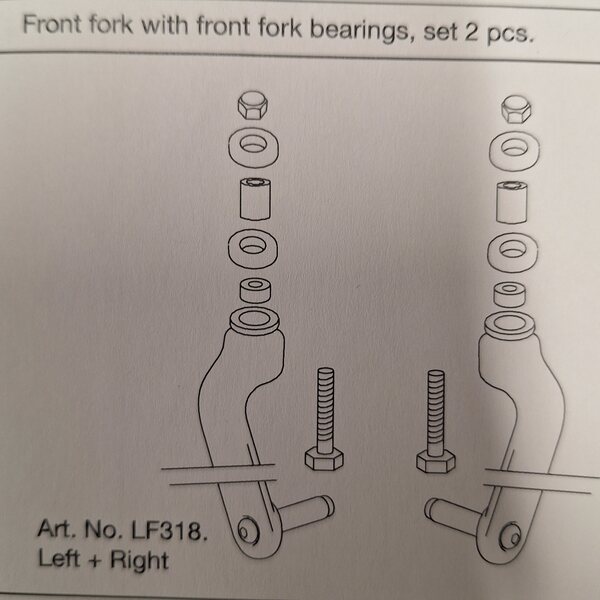 Let`s Fly rollaattoriin sopiva etuhaarukka laakereineen ( 2 kpl). Jos rollaattorin ohjaus tuntuu jäykältä, rohisee tai etupyörä "vipottaa", syynä on usein kulunut tai vaurioitunut kääntölaakeristo. Tämä varaosasetti takaa, että liikkuminen on jälleen turvallista ja sujuvampaa.