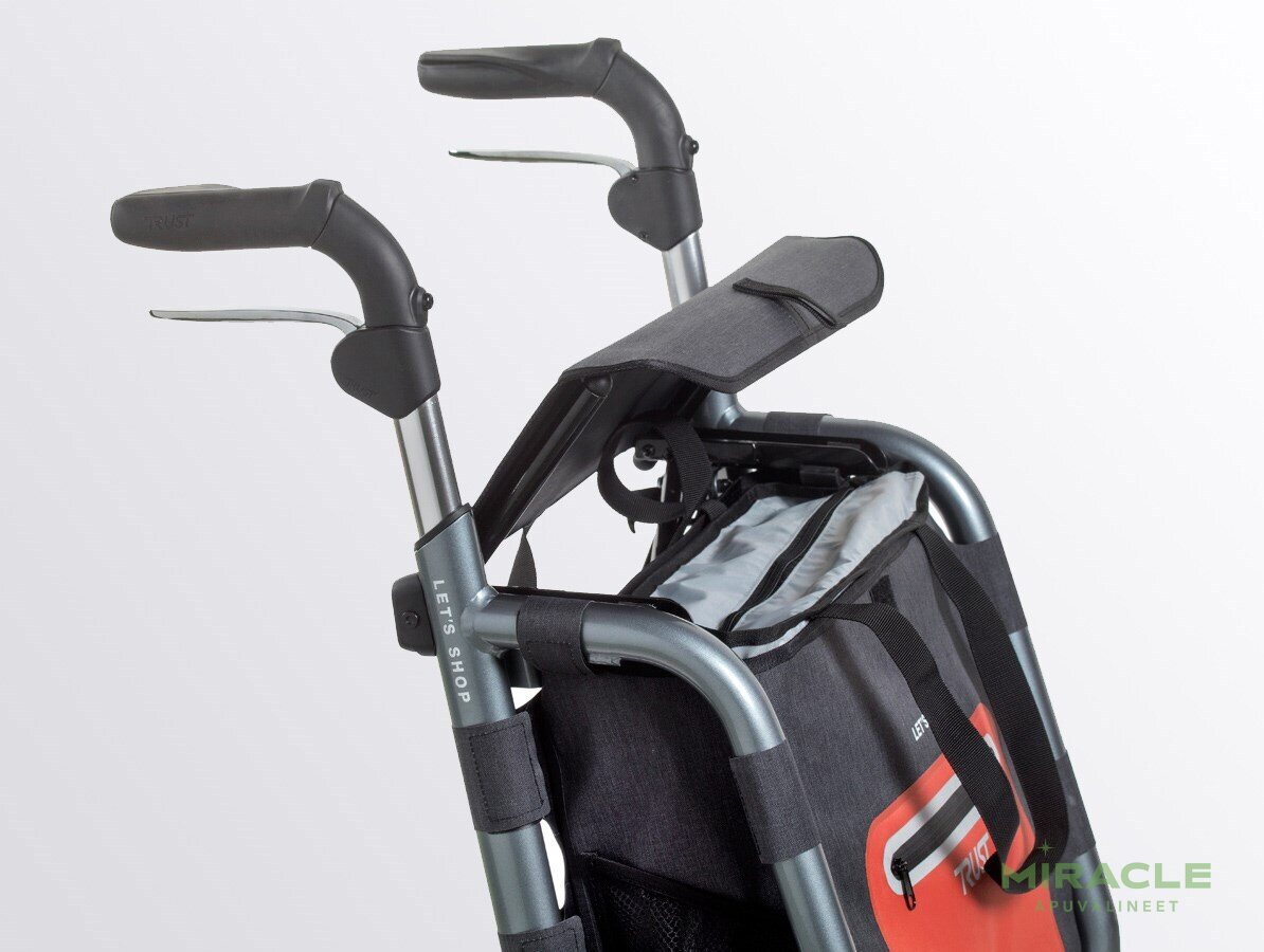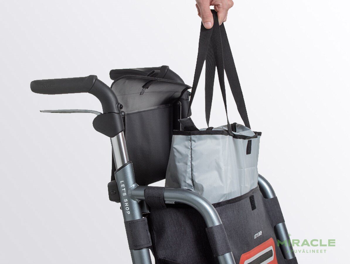 Let`s Shop ostosrollaattori on kevyt alumiininen rollaattori, joka on varustettu suurella ostoslaukulla. Laukkuun mahtuu hyvin ostokset ja henkilökohtaiset tavarat. Tilavan laukun sisällä on kätevä erillinen pussi, joka helpottaa laukun täyttämistä ja tyhjentämistä. Laukussa on taskut ja helppokäyttöinen kansi, joka toimii myös istuimena.