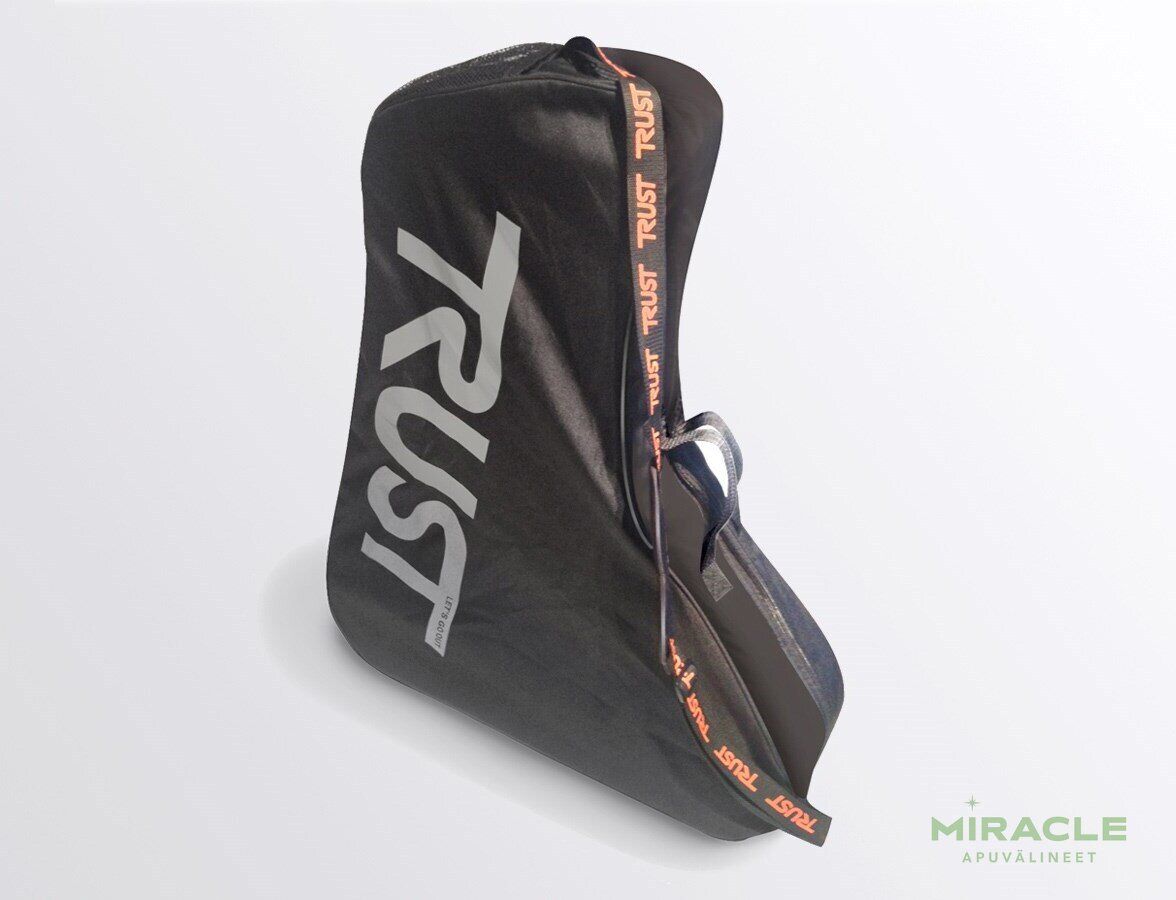 • Räätälöity istuvuus: Muotoiltu sopimaan tarkasti Trust Caren malleihin, jolloin paketti pysyy kompaktina.