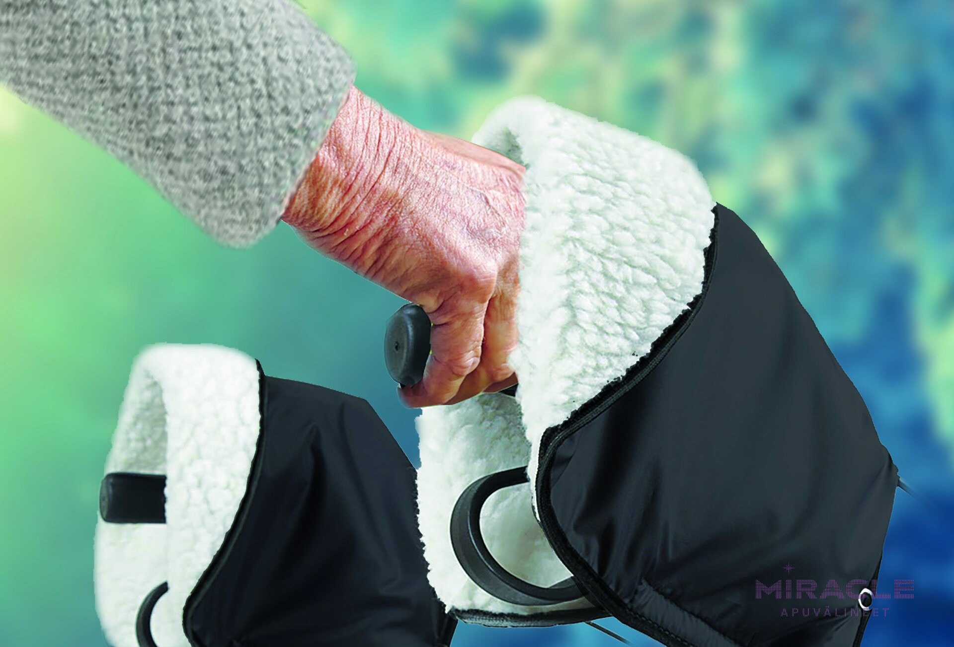 Etsitkö lämmikettä käsillesi rollaattorilla tai pyörällä liikkuessasi? Nämä lämpösuojat ovat käytännölliset apuvälineet esimerkiksi silloin, kun sinulla on heikentynyt verenkierto käsissä tai haluat vain lisäsuojaa viileällä säällä. Lämpösuojien päällinen on laadukasta polyamidia vedenpitävällä PU-pinnoitteella, ja ne on vuorattu lämpimällä ja pehmeällä polyesterillä. Kuminauhan avulla ne pysyvät napakasti paikoillaan, ja tarrakiinnitys ja neppari tekevät niiden asentamisesta helppoa. Nämä Lämpösuojat ovat käsin pestävät.